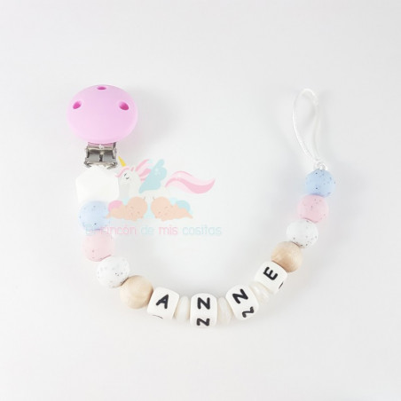 Chupetero combinado de madera y silicona alimentaria.