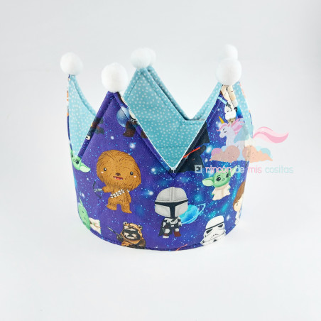 Corona de cumpleaños hecha a mano con telas 100% algodón. La medida se regula con velcro, por lo que sirve para varios años. Si no estas seguro de que el tamaño le sirva al peque, puedes ponernos la medida del contorno de la cabecita en observaciones del pedido, y así lo tendremos en cuenta.