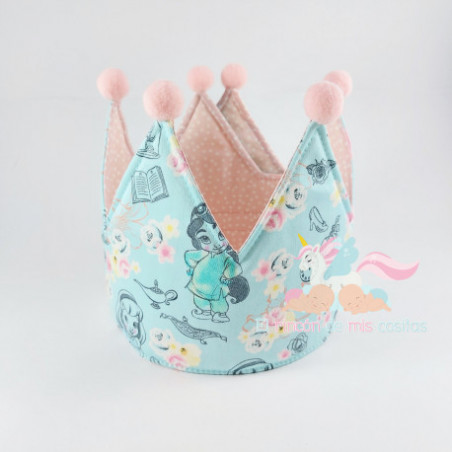 Corona de cumpleaños hecha a mano con telas 100% algodón. La medida se regula con velcro, por lo que sirve para varios años. Si no estas seguro de que el tamaño le sirva al peque, puedes ponernos la medida del contorno de la cabecita en observaciones del pedido, y así lo tendremos en cuenta.