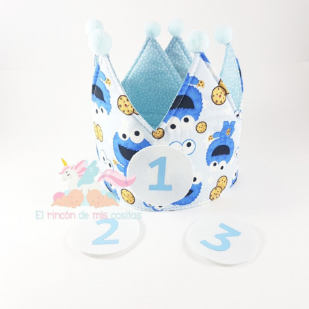Corona de cumpleaños hecha a mano con telas 100% algodón. La medida se regula con velcro, por lo que sirve para varios años. Si no estas seguro de que el tamaño le sirva al peque, puedes ponernos la medida del contorno de la cabecita en observaciones del pedido, y así lo tendremos en cuenta.