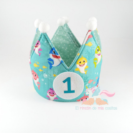 Corona de cumpleaños hecha a mano con telas 100% algodón. La medida se regula con velcro, por lo que sirve para varios años. Si no estas seguro de que el tamaño le sirva al peque, puedes ponernos la medida del contorno de la cabecita en observaciones del pedido, y así lo tendremos en cuenta.
