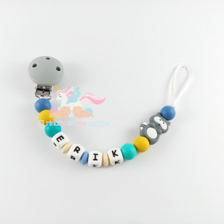 Chupetero de silicona con nombre personalizado.