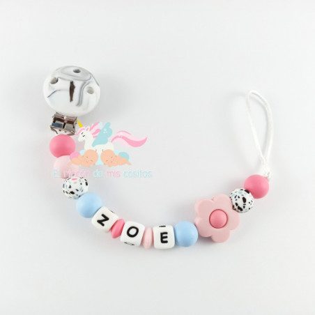 Chupetero de silicona con nombre personalizado.