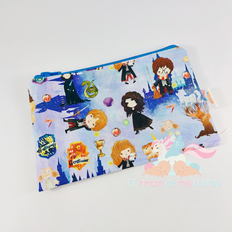 Neceser pequeño tipo estuche, hecho con telas 100% de algodón, forrado en el interior y cierre de cremallera.