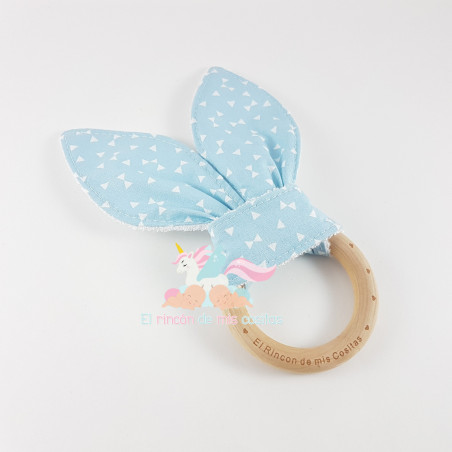 Mordedor orejitas hecho con telas 100% algodón. En la cara interior lleva rizo suave de toalla, muy agradable al tacto.