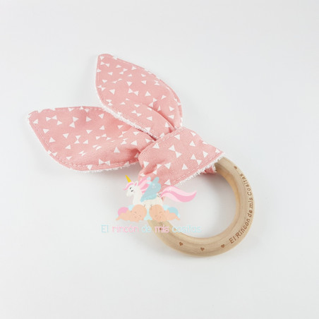 Mordedor orejitas hecho con telas 100% algodón. En la cara interior lleva rizo suave de toalla, muy agradable al tacto.